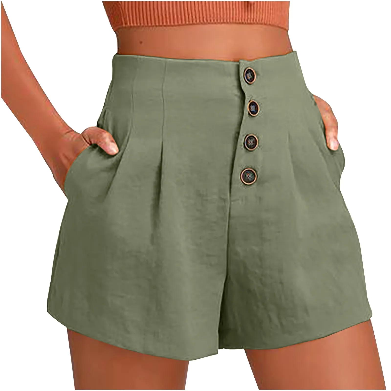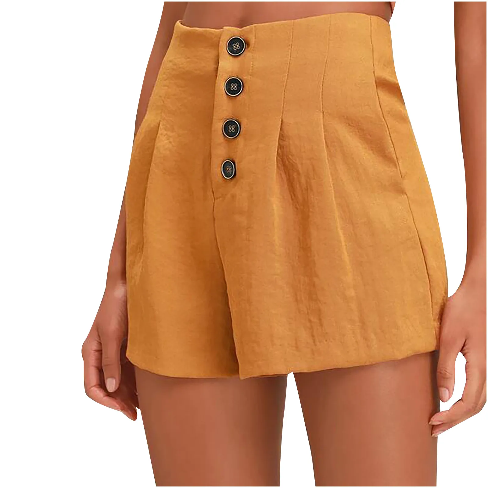 Calça Curta Feminina Casual com Botões, Cintura Alta, Modelagem Reta e Solta