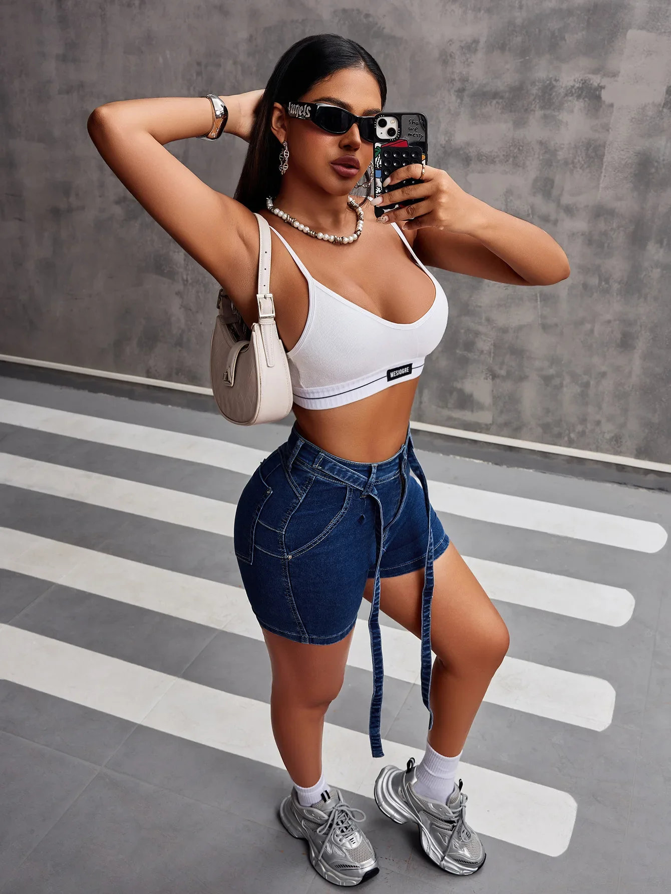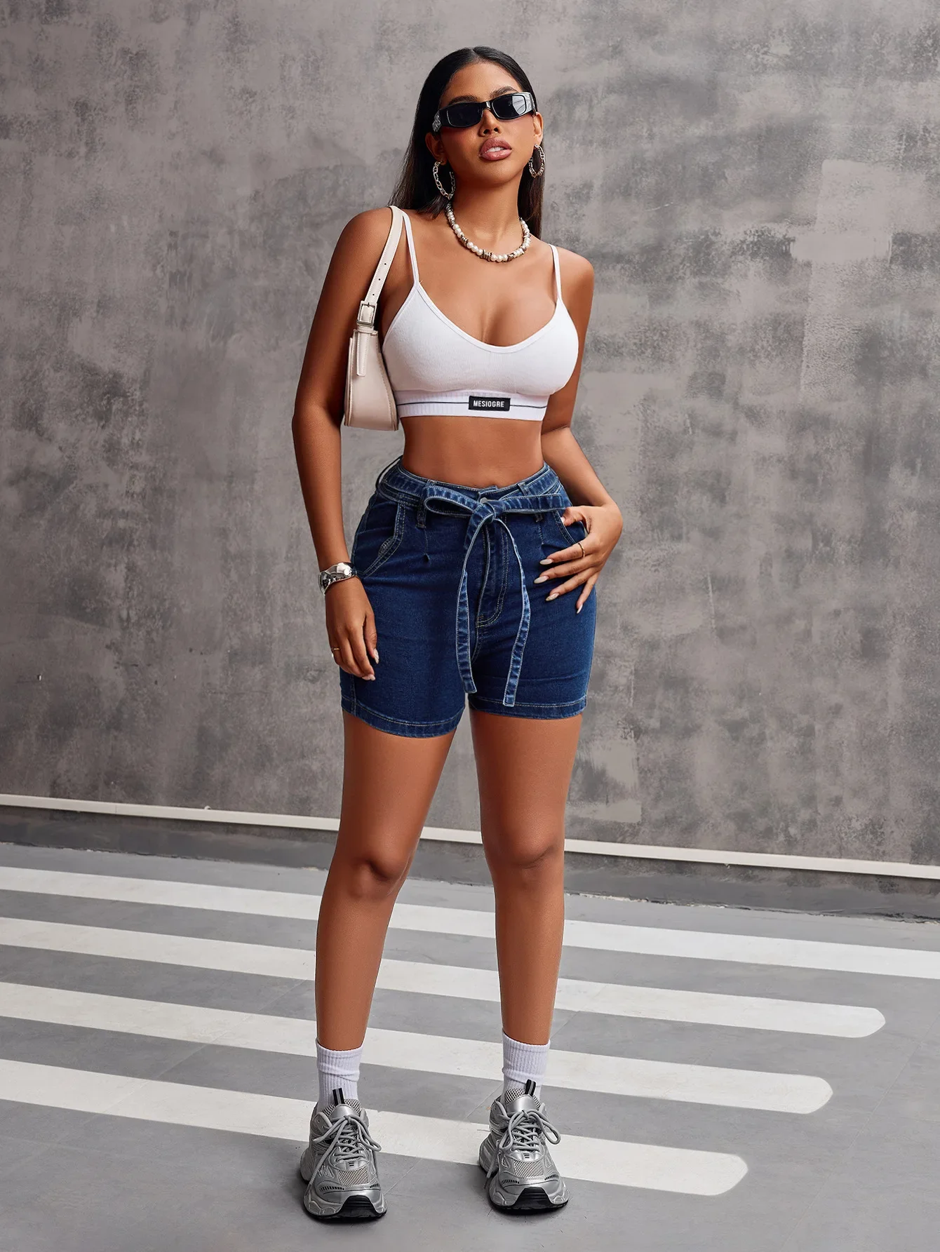 Shorts Jeans Belisse Summer Knot | Shorts Jeans Feminino com Amarração | Bolso Frontal e Cintura Média