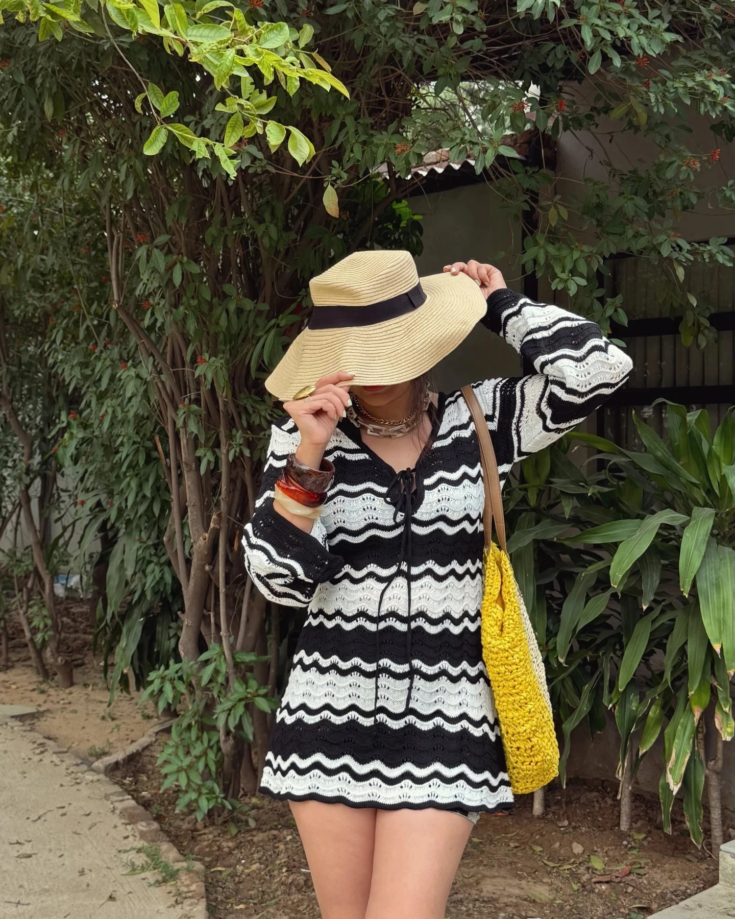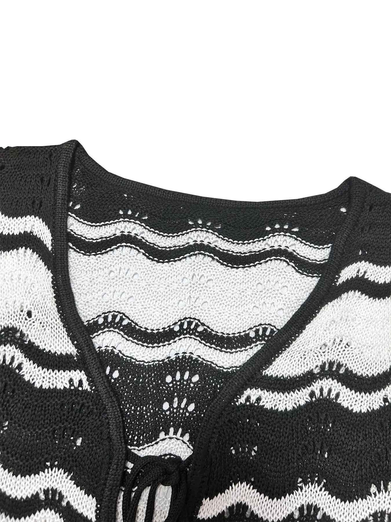 O decote em V com amarração frontal e as mangas longas vazadas criam um visual moderno e romântico ao mesmo tempo. Leve e confortável, ele é ideal para quem busca um look de praia sofisticado e versátil.